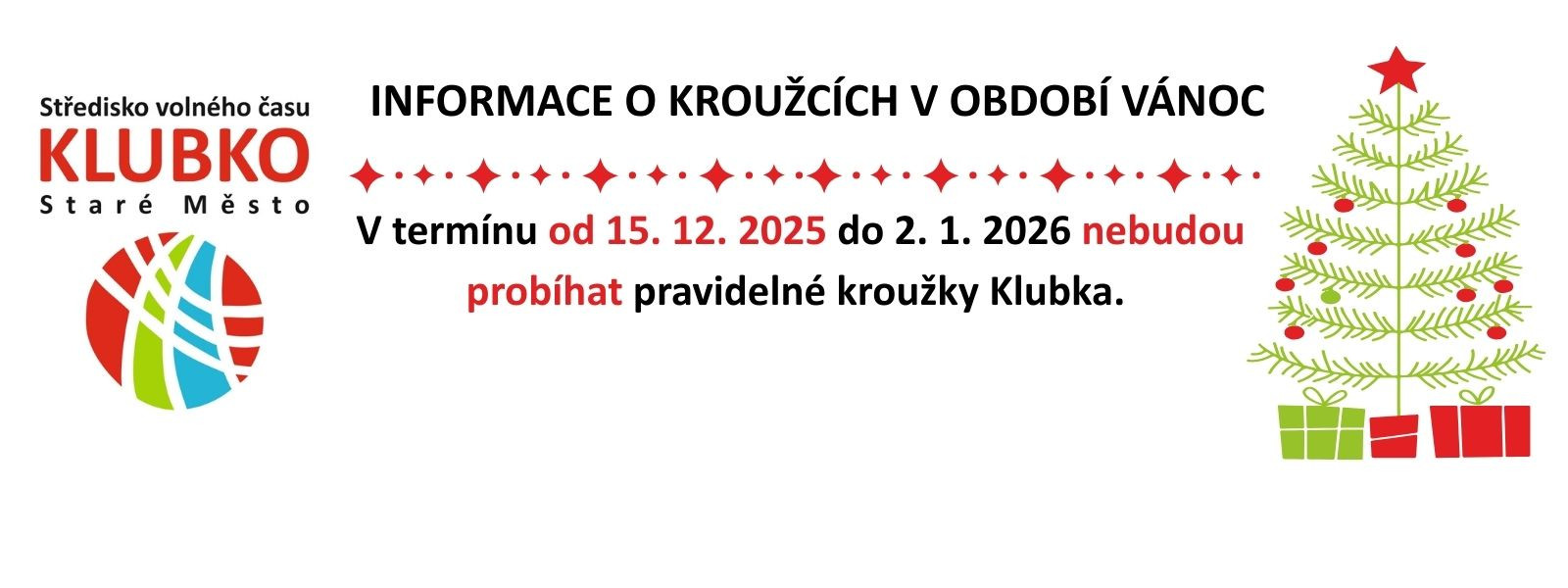 Kdy kroužky SVČ Klubko před Vánoci končí a kdy v novém roce začínají? Informace k provozní době v předvánočním období.