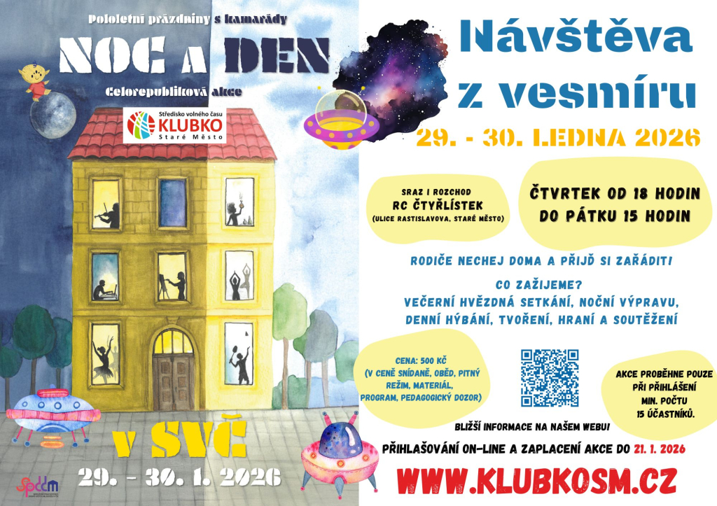 Na večeři si vezmi co máš rád, ať tě v noci nepřepadne hlad (možno ohřát v mikrovlné troubě). Snídaně a oběd na pátek bude zajištěn. Po oba dny zajištěn pitný režim - vezměte si vlastní lahev. Po celou dobu zajištěn pedagogický dozor.